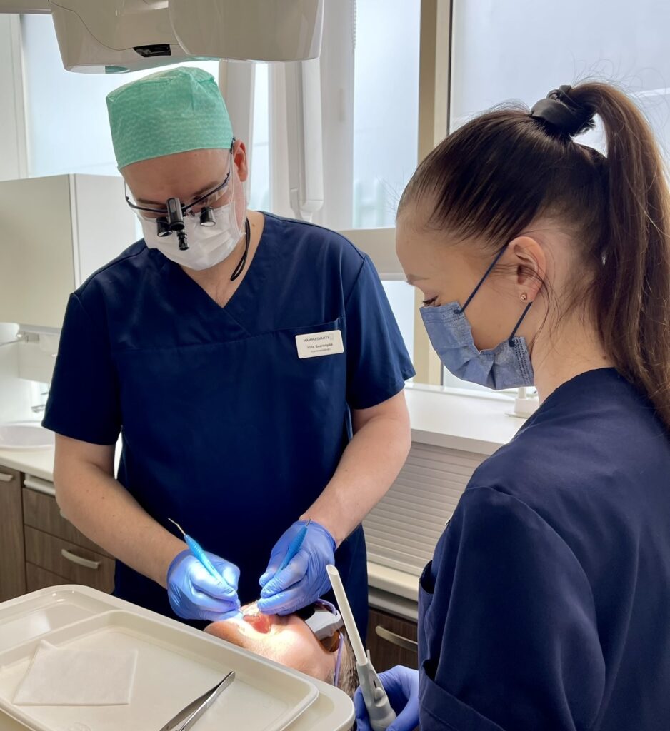 - Täyttö ja viimeistely: Hammas paikataan valitulla materiaalilla, muotoillaan purentaan sopivaksi ja kiillotetaan.